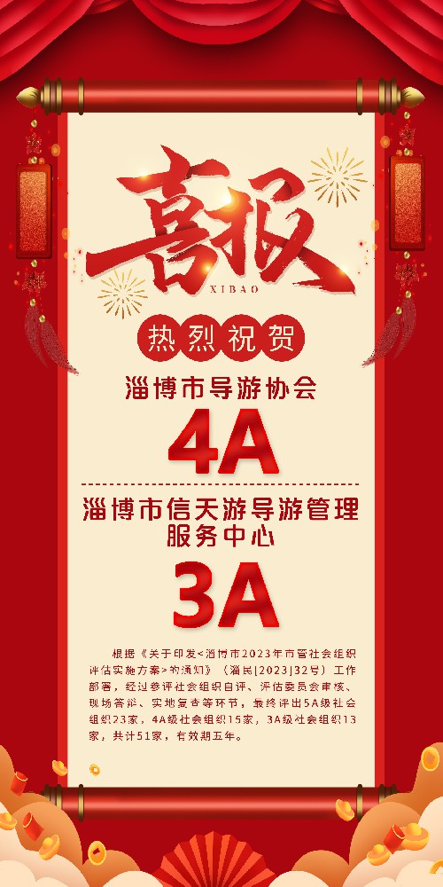 热烈祝贺淄博市导游协会再次荣获“淄博市4A级社会组织”荣誉称号