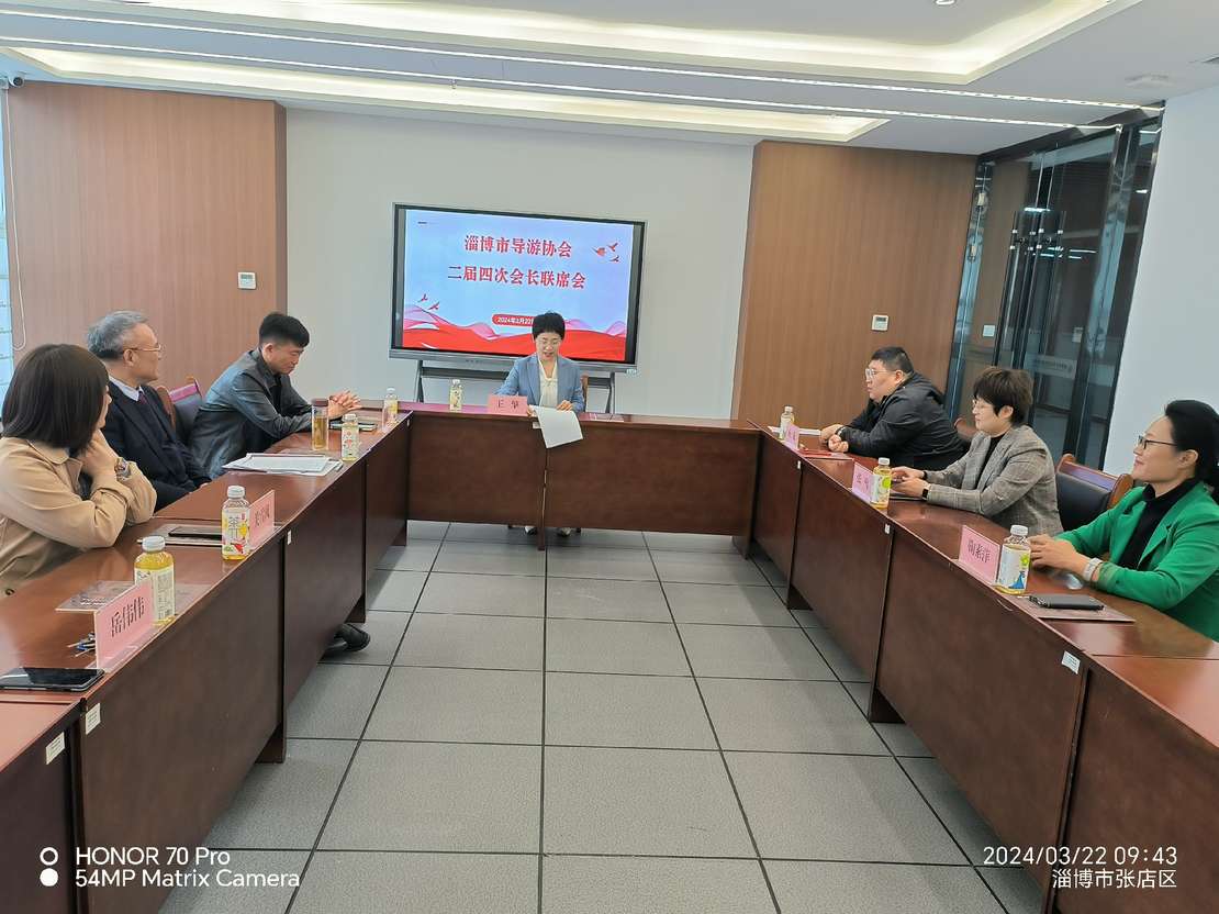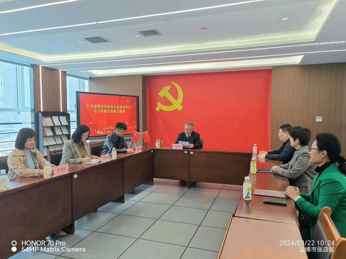 2024年3月22日上午,淄博市导游协会在淄博市社会组织党群服务中心二楼三会一课室举行了二届四次会长联席会,共有会长、副会长8名成员参与,会议由秘书长岳伟伟主持召开。会长王红星宣读《章程》增加内容以及人事任命,常务副会长王擎对2023年工作进行了总结汇报,并对2024年的工作进行部署。会后党支部进行了主题党日活动,贯彻学习了全国两会精神。